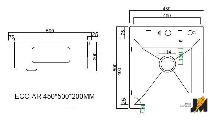 Длина мойки | 50см |