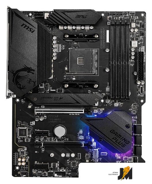 ATX, сокет AMD AM4, чипсет AMD B550, память 4xDDR4, слоты: 2xPCIe x16, 2xPCIe x1, 2xM.2