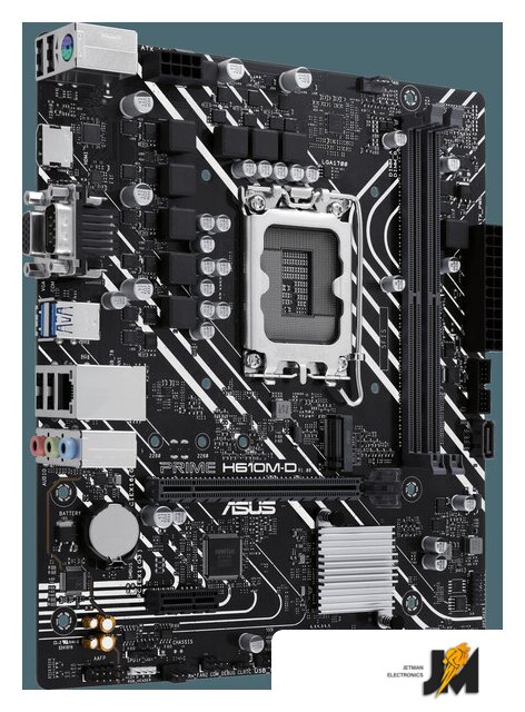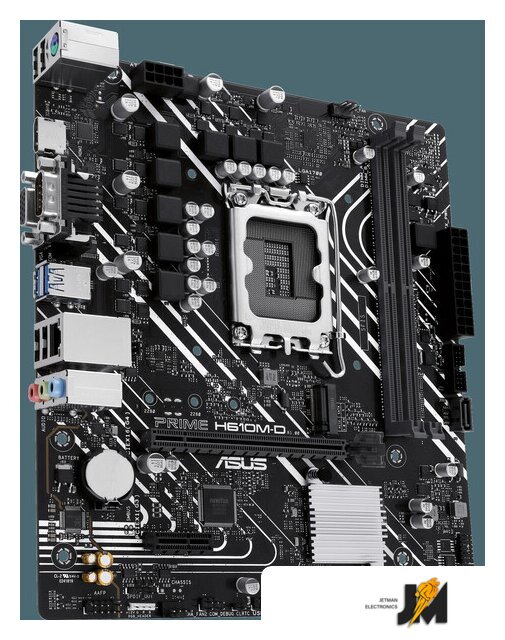 mATX, сокет Intel LGA1700, чипсет Intel H610, память 2xDDR5 до 5600 МГц, слоты: 1xPCIe x16, 1xPCIe x1, 1xM.2