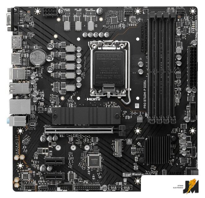 mATX, сокет Intel LGA1700, чипсет Intel B760, память 4xDDR4, слоты: 1xPCIe x16, 2xPCIe x1, 2xM.2