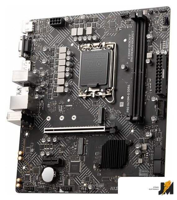mATX, сокет Intel LGA1700, чипсет Intel H610, память 2xDDR4, слоты: 1xPCIe x16, 1xPCIe x1, 1xM.2