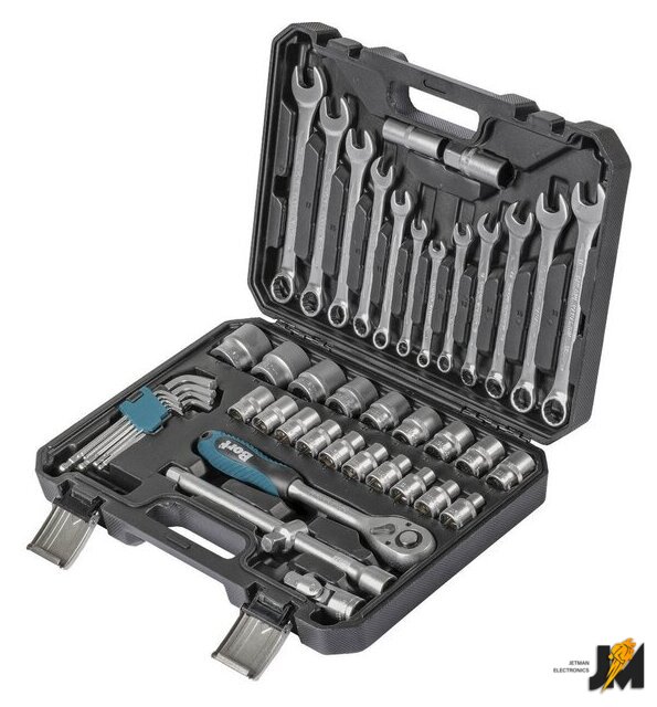 Комплектация | Ключ комбинированный (12 шт) Головки 1/2 (19 шт) Головка торцевая свечная, 1/2 (2 шт) Шарнир карданный 1/2 (1 шт) Удлинитель 1/2:250 мм (1 шт) Адаптер 1/2 (1 шт) Ключ шестигранный (9 шт) Рукоятка с трещеткой квадрат 1/2 (1 шт) Кейс (1 шт) |