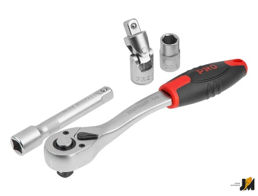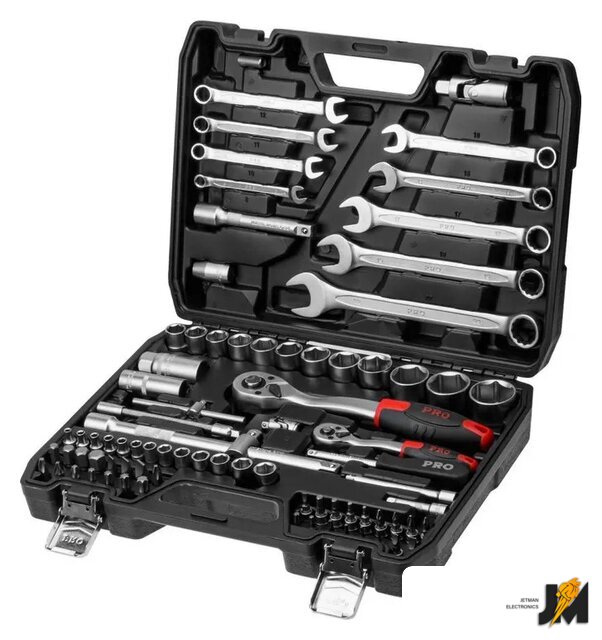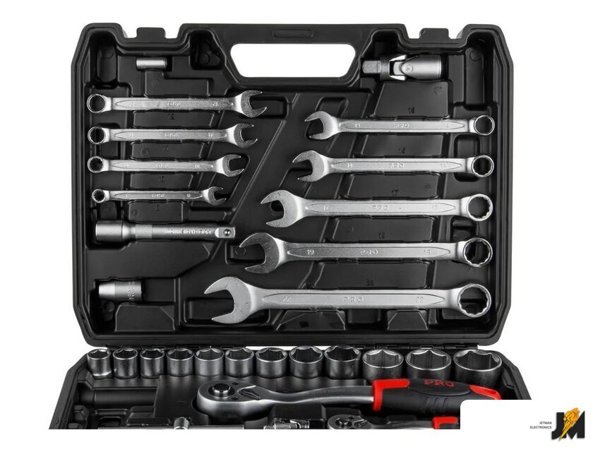 Комплектация | Ключ комбинированный: 8, 10, 11, 12, 13, 14, 17, 19, 22 мм;Головка торцевая 1/4: 4, 4.5, 5, 5.5, 6, 7, 8, 9, 10, 11, 12, 13 мм;Головка с насадкой HEX 1/4: H3, H4, H5, H6;Головка с насадкой TORX 1/4: T8, T10, T15, T20, T25, T30;Головка с насадкой SL 1/4: SL4, SL5.5, SL7;Головка с насадкой PH 1/4: PH1, PH2;Головка с насадкой PZ 1/4: PZ1, PZ2;Головка торцевая 1/2: 14, 15, 16, 17, 18, 19, 20, 21, 22, 23, 24, 27, 30, 32 мм;Свечная головка 1/2: 16, 21 мм;Насадка 5/16 HEX: H7, H8, H10, H12, H14;Насадка 5/16 TORX: T40, T45, T50, T55;Насадка 5/16 SL: SL8, SL10, SL12;Насадка 5/16 PH: PH3, PH4;Насадка 5/16 PZ: PZ3, PZ4;Трещотка 1/4;Переходник (держатель для бит) 1/4х1/4(HEX);Удлинитель 1/4 50 мм;Удлинитель 1/4 100 мм;Гибкий удлинитель 1/4;Кардан 1/4;Вороток-отвертка 1/4 150 мм;Вороток 1/4 с плавающей головкой 115 мм;Трещотка 1/2;Переходник (держатель для бит) 1/2х5/16(HEX);Удлинитель 1/2 125 мм;Удлинитель 1/2250 мм;Кардан 1/2;Переходник 3/8(F)х1/2(М) с отверстием;Кейс |