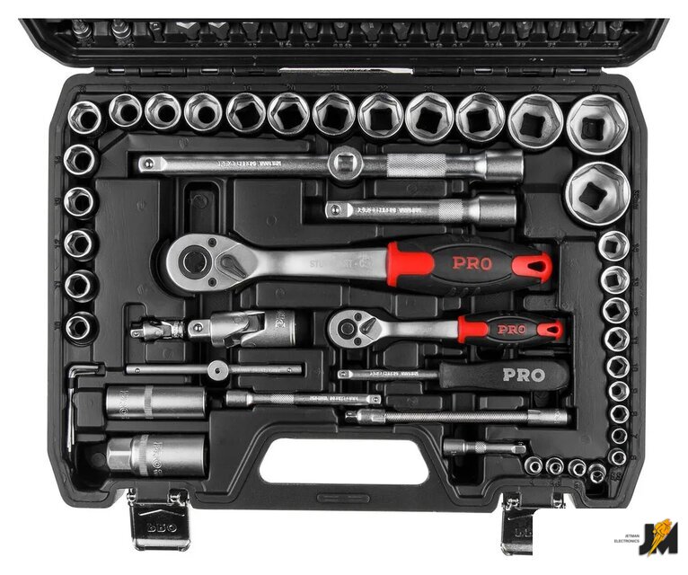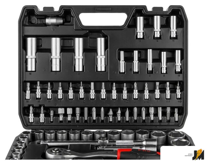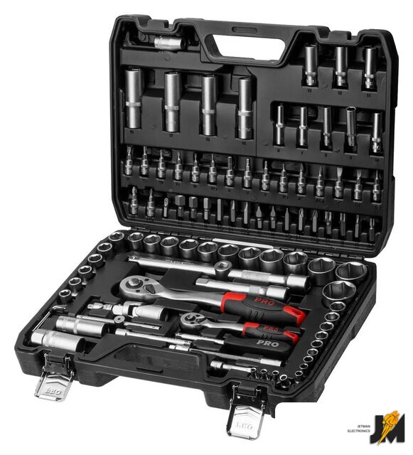 | Комплектация | Головка торцевая 1/4: 4, 4.5, 5, 5.5, 6, 7, 8, 9, 10, 11, 12, 13, 14 мм;Головка торцевая глубокая 1/4: 6, 7, 8, 9, 10, 11, 12, 13 мм;Головка с насадкой HEX 1/4: H3, H4, H5, H6;Головка с насадкой TORX 1/4: T8, T10, T15, T20, T25, T30;Головка с насадкой SL 1/4: SL4, SL5.5, SL7;Головка с насадкой PH 1/4: PH1, PH2;Головка с насадкой PZ 1/4: PZ1, PZ2;Головка торцевая 1/2: 10, 11, 12, 13, 14, 15, 16, 17, 18, 19, 20, 21, 22, 23, 24, 27, 30, 32 мм;Головка торцевая глубокая 1/2: 14, 15, 17, 19 мм;Свечная головка 1/2: 16, 21 мм;Насадка 5/16 HEX: H8, H10, H12, H14;Насадка 5/16 TORX: T40, T45, T50, T55;Насадка 5/16 SL: SL8, SL10, SL12;Насадка 5/16 PH: PH3, PH4;Насадка 5/16 PZ: PZ3, PZ4;Трещотка 1/4;Переходник 1/4 под шуруповерт;Удлинитель 1/4 50 мм;Удлинитель 1/4 100 мм;Гибкий удлинитель 1/4;Кардан 1/4;Вороток-отвертка 1/4 150 мм;Вороток 1/4 с плавающей головкой 115 мм;Трещотка 1/2;Переходник (держатель для бит) 1/2х5/16(HEX);Удлинитель 1/2 125 мм;Удлинитель 1/2 250 мм;Кардан 1/2;Переходник 3/8х1/2 с отверстием;Ключ шестигранный Г-обр.: 1.5, 2, 2.5 мм;Кейс |