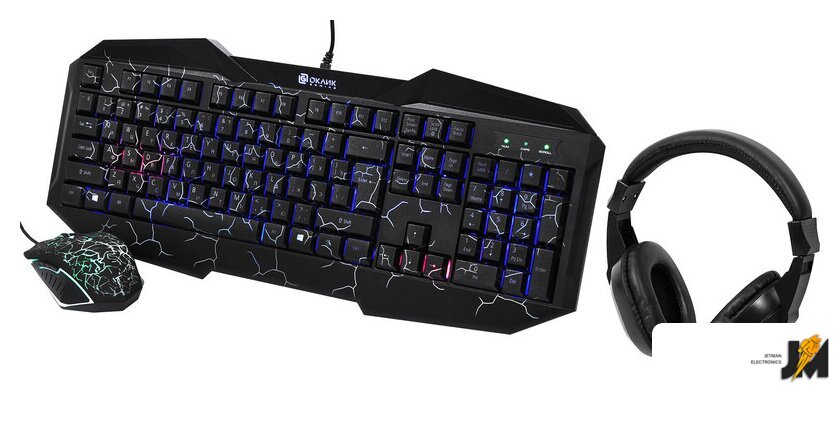 Полная комплектация набора | - игровая компьютерная клавиатура Oklick 731G- игровая компьютерная мышь Oklick 895G- игровая компьютерная гарнитура Oklick HS-L300G- документация |