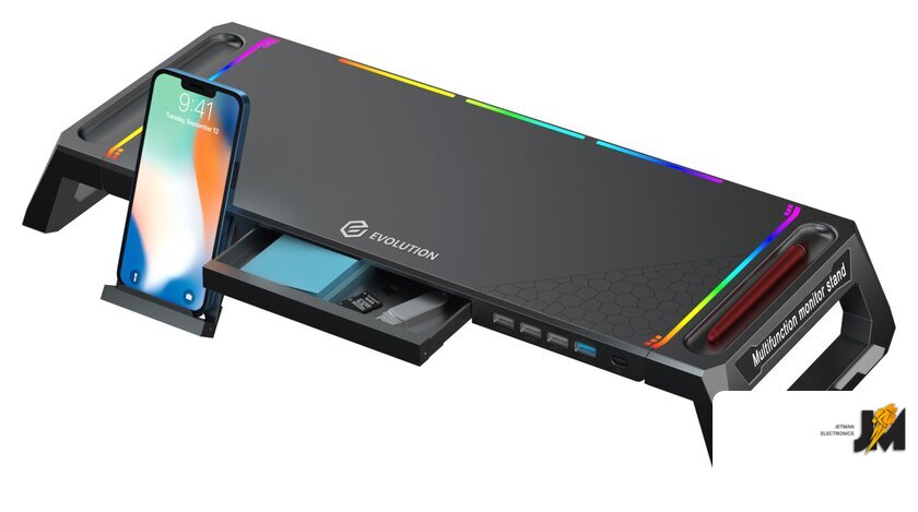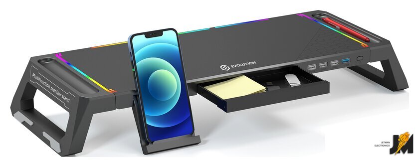 Особенности | - складная конструкция ножек (позволяет изменять габариты и высоту подставки)- скрытая подставка для смартфона- ящик для мелочей- два слота для ручек- максимальный вес монитора (при использовании со сложенными ножками) - 20 кг- максимальный вес монитора (в разложенном состоянии) - 50 кг |