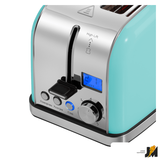 950 Вт, количество тостов: 2, корпус: металл, 7 степеней обжаривания, цвет мятный/нержавеющая сталь